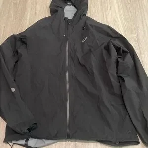 Asics Black Hooded Rain Jacket with Reflective Logo