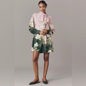 NWT Anthropologie Maeve Caroline Tie-Neck Mini Dress Pink Floral XXS