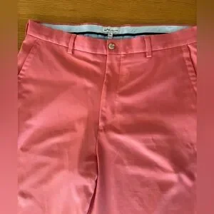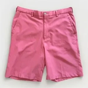 Peter Millar Shorts Men 36L Khaki Coral Res Salem Performance Flat Front Golf