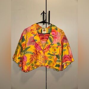 FARM RIO Macaw Bloom Crop Cotton Shirt Size Medium