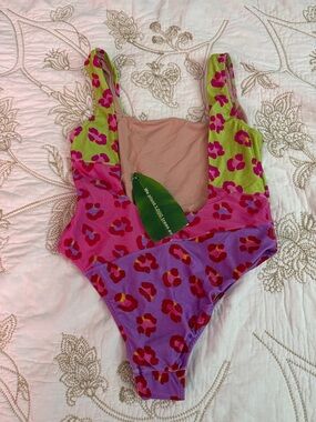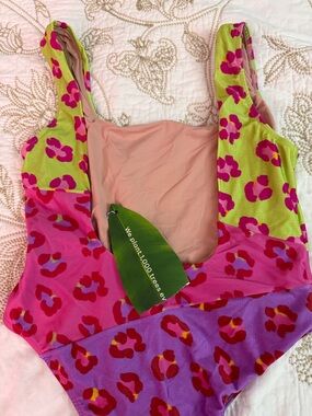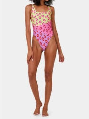 NWT FarmRio Maxi Leopard One-Piece Swimsuit - Neon Lime & Pink size medium