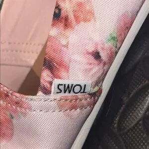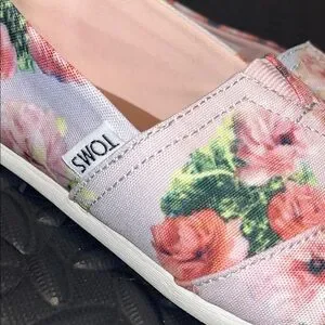 TOMS floral slip-on shoes in women’s size 7 featuring a soft pink base with a multicolor floral print. Lightweight and comfortable canvas design, perfect for everyday casual wear in spring and summer. Shoes are in good condition with minimal wear and no major flaws. Soles and uppers are still solid, and the print is vibrant. Easy to throw on and go, and a great addition to any casual wardrobe.
