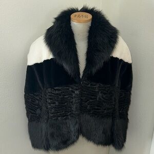 CeLeste by Bibhu black white faux fur cape poncho m medium