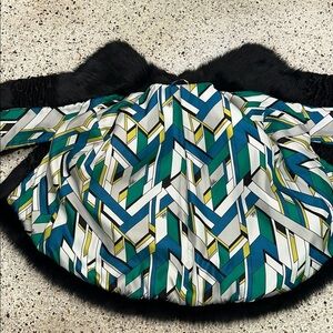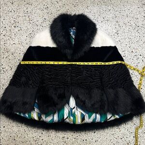 EUC worn once CeLeste by Bibhu black white cape poncho faux vegan fur brigh Pucci like lining medium m see measurements