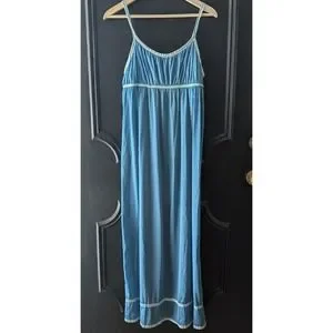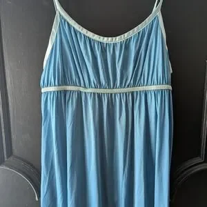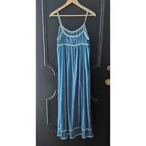 VTG 1970's Vassarette Size 13 Blue Nylon Nightgown Slip Dress Maxi Lingerie