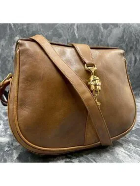 Gucci Shoulder Bag Leather Genuine Leather Brown Beige Vintage Gucci Gold Hardware Vintage