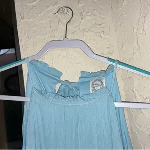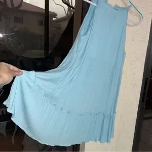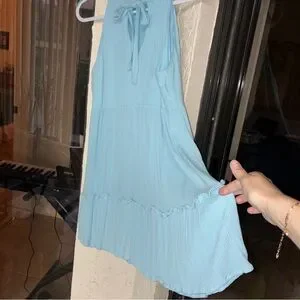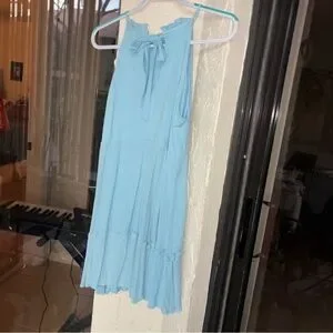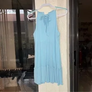 Blue Rain Sky Blue Tiered High Neck Ruffle Mini Dress - Size L