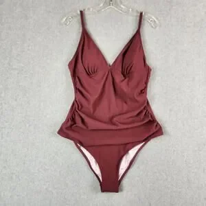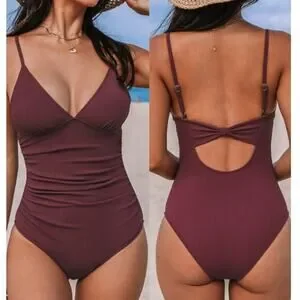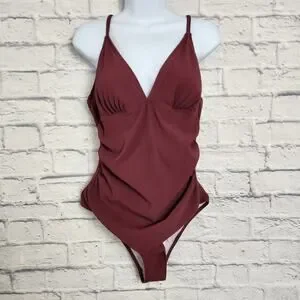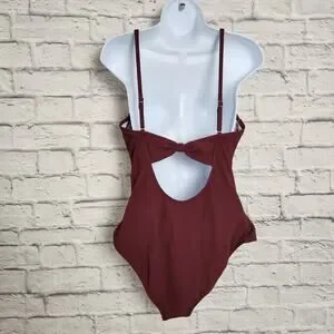 🌼NWT Cupshe Swimsuit Large One Piece Removable Cups Adj Straps Ribbed Burgandy