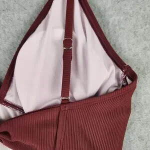 NWT Cupshe Swimsuit Sz Large One Piece Removable Cups Adj Straps Ribbed Burgandy