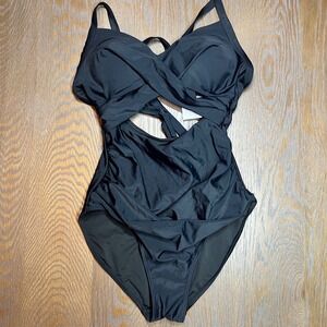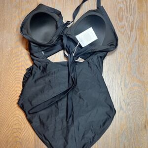 Black One Piece Swimsuit Crossover Halter Cutout Monokini Small