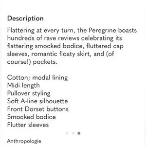 Soft A-line midi dress in crisp white. Smocked bodice with pullover styling. Flutter cap sleeves and front buttons. Light, airy fabric with pockets. Feminine, easy silhouette for many occasions.
