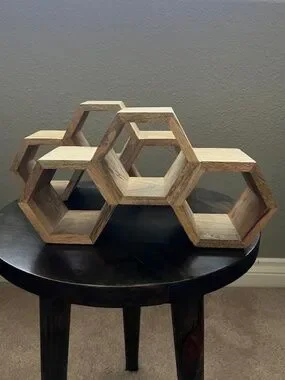 The natural wood finish and eye-catching hexagon design elevates your home. Use as a wine rack or just as decor.