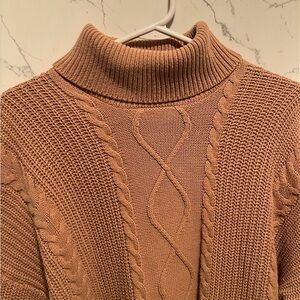 Crown & Ivy Cable Knit Turtleneck Sweater Dress - Camel Tan Womens Size XL