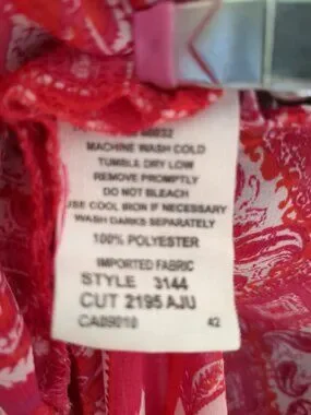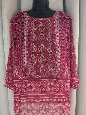 Pink / White Light Weight Flowing Top / Blouse with one button back side top and one button on each sleeve measure's 25" arm pit to arm pit / 25" length