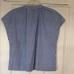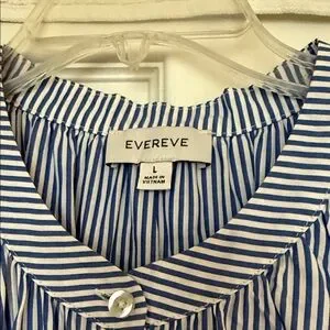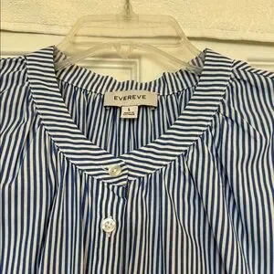 Evereve Navy & White Stripe Cap Sleeve Button Down Top 100% cotton - Size Large