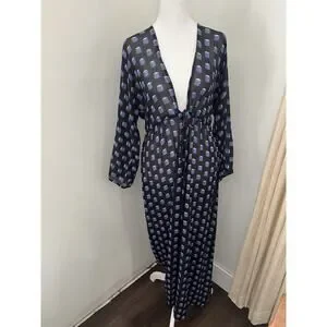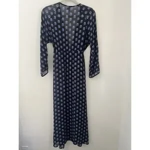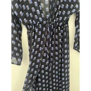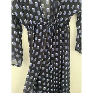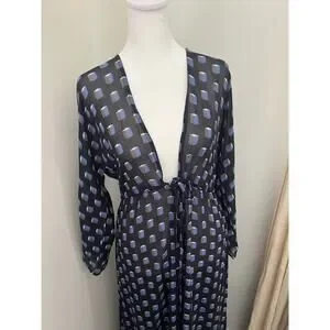 Evarae Silk Sheer Geometric Print Swim Cover up Dress Duster Kimonno Size small