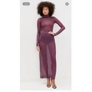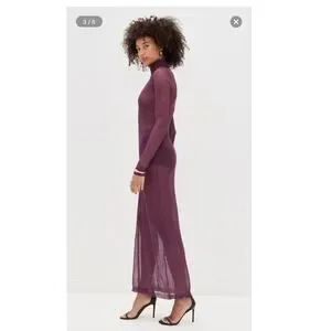 Afrm vilas turtleneck long sleeve semi sheet maxi dress fig purple small