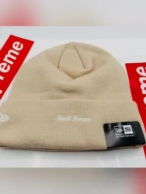 Supreme x New Era Box Logo Beanie – Stone / Beige (FW24) Brand New