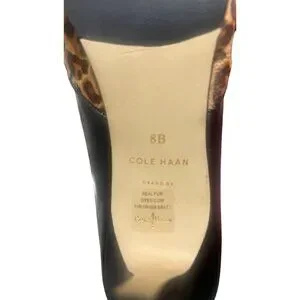 These Cole Haan pumps combine elegance with a touch of wild sophistication. The leopard print fur adds a unique flair, while the leather construction ensures durability and comfort. Suitable for professional settings, these shoes offer a stylish statement that complements various outfits.