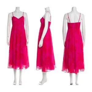 NEW AJE Sway Paneled Red & Pink Fluorescent Rose Spaghetti Strap Midi Dress