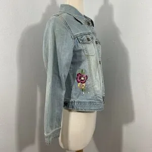 Childrens Place Jean Jacket Womens 14 Fairy Embroidered Denim BohoY2K