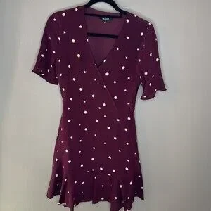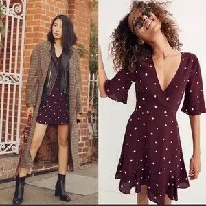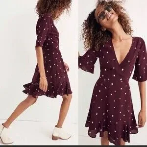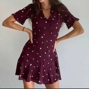 Madewell burgundy Silk Star Print Mini Dress size 0