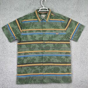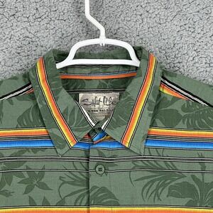 Salt Life Men's Hawaiian Tropical Green Button Up Striped Multicolor Shirt XL