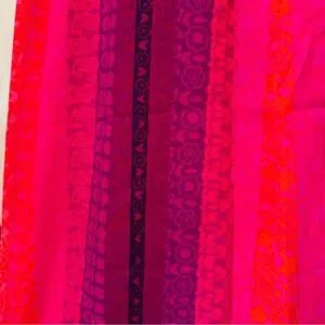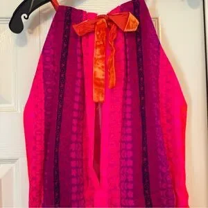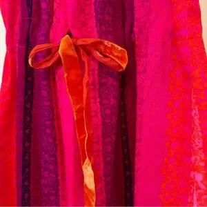 Vintage 1960s Handmade Maxi Dress Neon Pink Hot Tie Closure Stripes Hawaiin OS