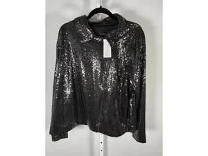 NWT Colleen Lopez Black Sequin Moto Jacket Sparkly Biker Blazer Size 3X
