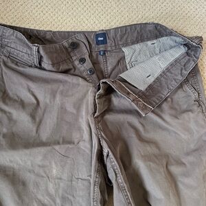 Comfortable men's gray chino shorts with a classic straight fit. Made from durable cotton-blend fabric for everyday wear. Features front pockets and belt loops for versatile styling. Easy-to-match gray color for casual or smart-casual outfits. Button fly.