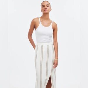Madewell 100% Linen Striped Column Maxi Skirt XS Side Slit Summer