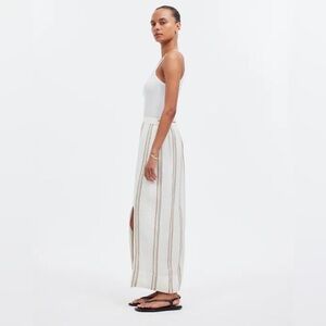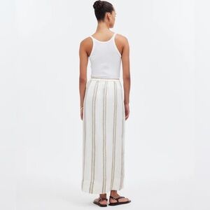 linen maxi skirt, madewell skirt, striped linen skirt, column skirt, side slit maxi, summer skirt, vacation skirt, resort wear, coastal style, minimalist skirt, beach chic, pull on skirt, ivory striped skirt, lightweight linen, xs linen skirt