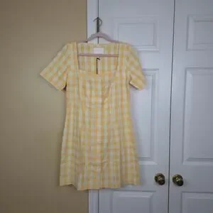 Rita Row Maria Mini Dress in Yellow White Gingham Size M