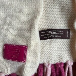 Coach pink and cream stripe lambs wool knit scarf