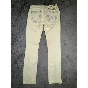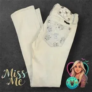 Miss Me Jeans Women's 26 Straight Acid Bleach Wash Studded Rhinestone Grunge
