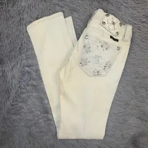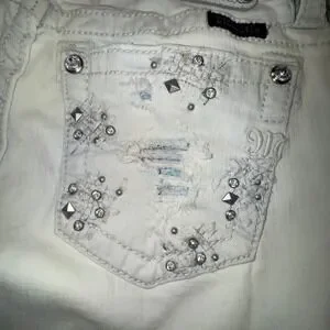 Keywords: Miss Me Jeans, denim, light wash, rhinestones, distressed, studded, signature style, western, country chic, bootcut, designer denim, fashion jeans, summer style, festival wear