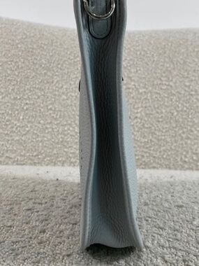 Beautiful Hermès Evelyne TPM in Bleu Pale / Gris Étain Clemence leather with palladium hardware.