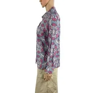 Talbots Petite Perfect Shirt Medallion Print Blue Pink Size MP