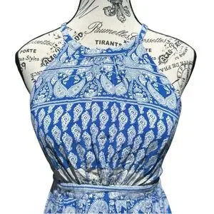 This stunning blue and white halter “Hide Away” dress by Lulus (sold by Free People) is perfect for any occasion. Its elegant yet simple design and comfortable fit make it a must-have in your wardrobe. Go from day to night by just changing your shoes and accessories and make up. This vibrant and flattering dress is versatile enough to wear to a family event, a bridal picnic, baby shower, lunch with friends, or just a day in the park a walk around town. Slide on some sparkly kitten heels and an updo and a belt and night make up and just be very coquette. It’s a very versatile and beautiful dress in excellent preowned condition. There are just minor strings that are very easily snipped, but I can’t find any stains odors, tears, or any other problems with it. It’s a gorgeous dress for a gorgeous spring day.! by the way, happy spring everyone!