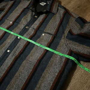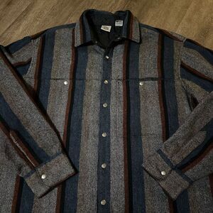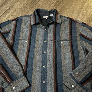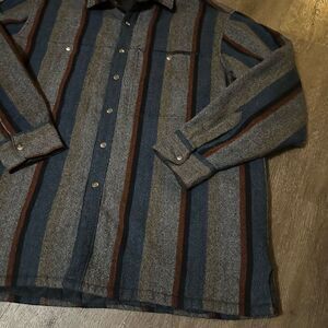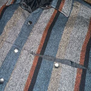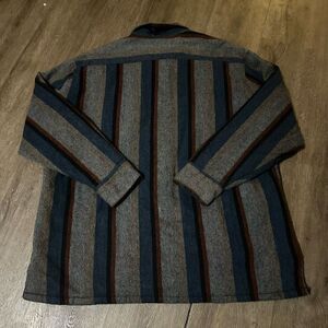 Vintage Shirt Jacket Mens XL Gray Striped Quilted Lined Shacket Wool Blend Snaps