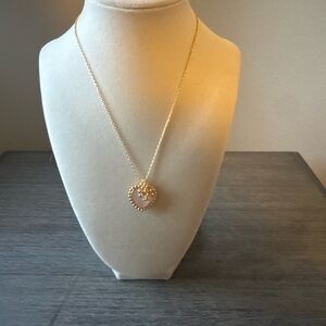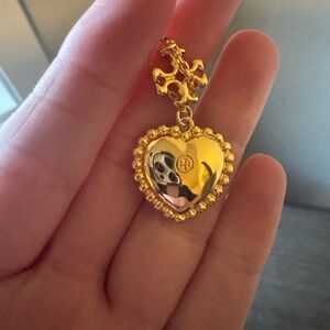 Tory Burch Gold Heart Pendant Necklace Logo Charm