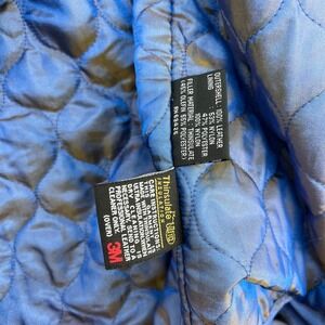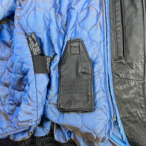 Pelle Studio Wilsons Leather bomber jacket offers a classic silhouette with a durable black leather shell and a vibrant blue quilted lining. Designed for warmth, it features Thinsulate Ultra insulation and a full-zip front closure. The jacket includes a pointed collar, elasticized waistband for a snug fit, and multiple pockets, including an interior pocket for secure storage. Quilted liner zips in and out.