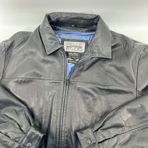 Wilsons Leather Pelle Studio Black Jacket Men 2X Thinsulate Lined Y2K Zip Coat