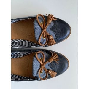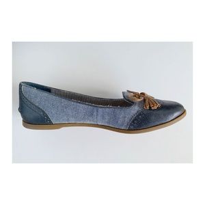 Reposh as they fit more like a 9! Casual Sperry flats with tassel accent. Denim-look upper with navy toe and heel. Slip-on style with cushioned insole. Versatile everyday shoe.
