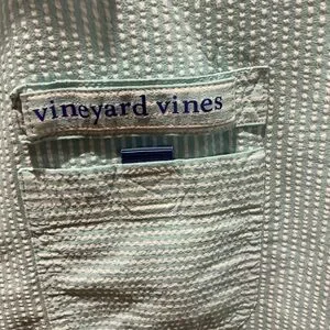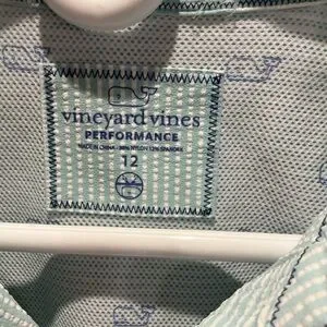 Great Vineyard Vines Performance top in a green and white striped seersucker. Top is a size 12 and is in nice preowned condition. Always washed in cold and line dried. Great over a swimsuit.