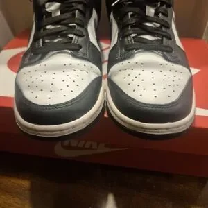 Classic Nike low-top sneakers. Smooth leather panels with stitched overlays. Padded collar and cushioned insole. Durable rubber outsole with grip. Clean two-tone look for daily wear.