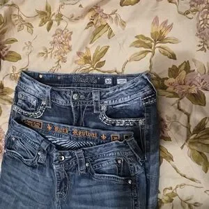 Y2K Miss Me & Rock Revival Women's Blue Denim Bootcut Jeans Bling Pockets