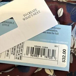 Fabric care and content: see photos, 96% Recycled Polyester, machine wash cold