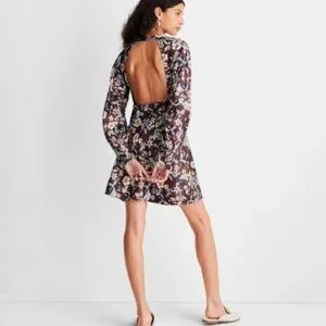 NWOT Future Collective NWT Silky Floral Shift Dress Open Back Romantic Feminine