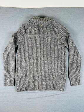 Soft ribbed knit wool blend cardigan with shawl collar. Button-front closure with classic buttons. Subtle textured knit for everyday wear.